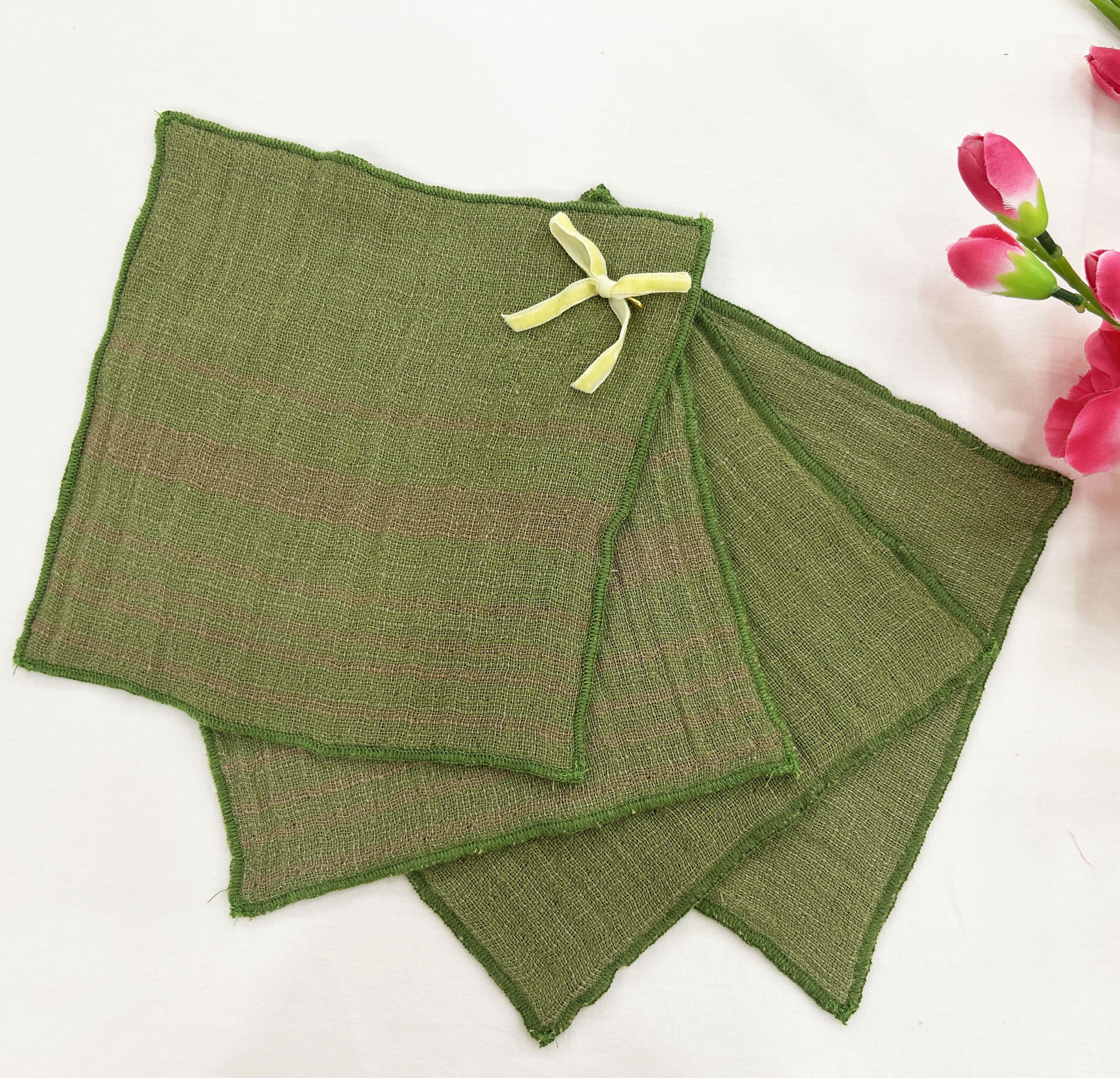 Ironing: The natural crinkled look is part of the charm and often requires no ironing. If you prefer a smoother finish, iron on a low heat setting while the napkin is still slightly damp.