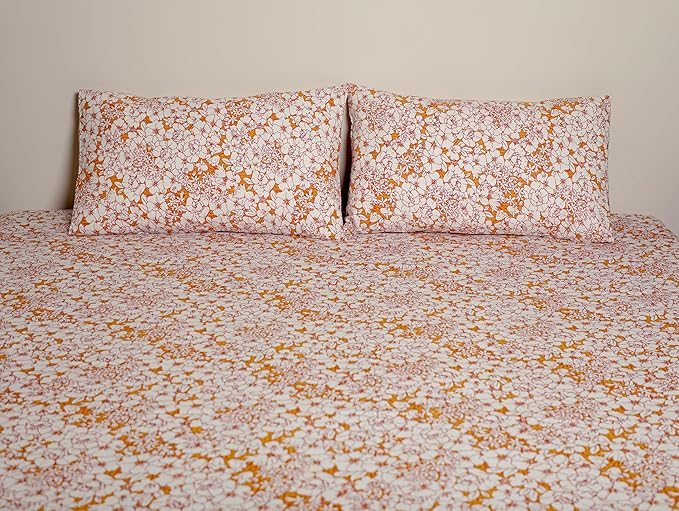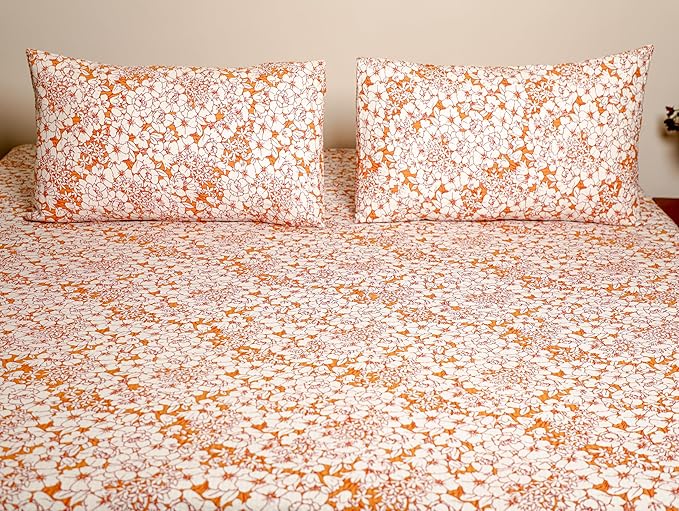 Elevate your bedroom with the luxurious feel and elegance of the Ecrue Luxury Pure Organic Cotton Seersucker Bed Sheet Set. Crafted with premium organic cotton and a unique seersucker texture, this set offers comfort, style, and durability. The intricate floral print in shades of vibrant orange gives a cheerful, inviting look to your space, making it perfect for any season.