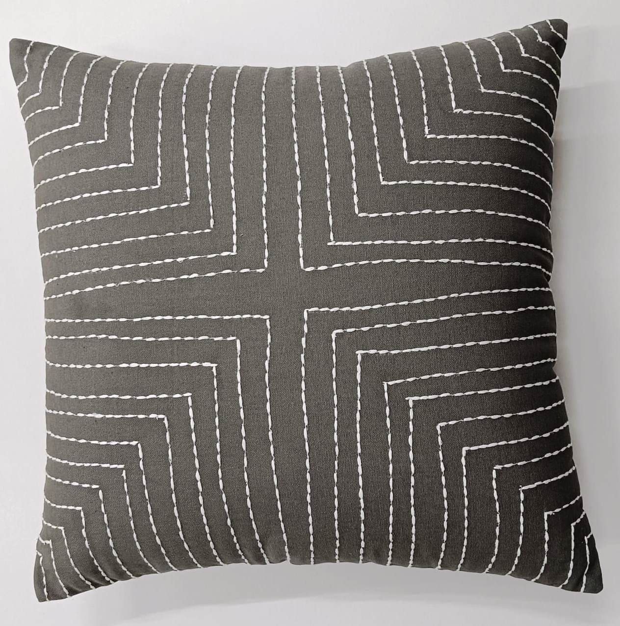 This Embroidered Cotton Canvas Cushion combines durable natural materials with the precision of modern textile technology. Designed in a classic 18x18 inch square, it serves as a versatile accent for sofas, beds, or armchairs.Product DescriptionBring a touch of refined artistry to your living space with our Computer Embroidered Cotton Canvas Cushion. The front panel is crafted from premium, solid-dyed cotton canvas, providing a sturdy yet breathable base for intricate computerized embroidery. This advanced technique ensures high-speed production with meticulous accuracy, resulting in clean, uniform, and repeatable designs that maintain a professional and elegant appearance.The reverse side is made from the same high-quality cotton canvas as the front, ensuring structural integrity and a cohesive look. A hidden zipper opening is thoughtfully integrated into the back, allowing for easy insertion of a cushion pad while maintaining a sleek, seamless silhouette.Key FeaturesDimensions: Standard 18x18 inch (45x45 cm) square size, ideal for standard cushion fillers.Front Detail: Solid-dyed cotton canvas featuring computerized embroidery for complex, high-definition motifs.Back Detail: Matching cotton canvas backing for a polished, double-sided quality.Secure Closure: Includes a concealed zipper at the back or bottom for effortless maintenance and a modern finish.Durability: Cotton canvas is a firm, stable fabric that resists wear, making it perfect for frequently used seating areas.Technical SpecificationsFeatureSpecificationMaterial100% Cotton Canvas (Front & Back)Embroidery TypeComputer-assisted / Machine EmbroiderySize18" x 18" (45 x 45 cm)Closure TypeHigh-quality Zipper (Hidden)MaintenanceRecommended Spot Clean or Gentle Hand Wash
