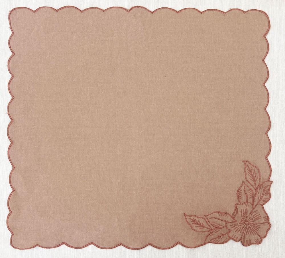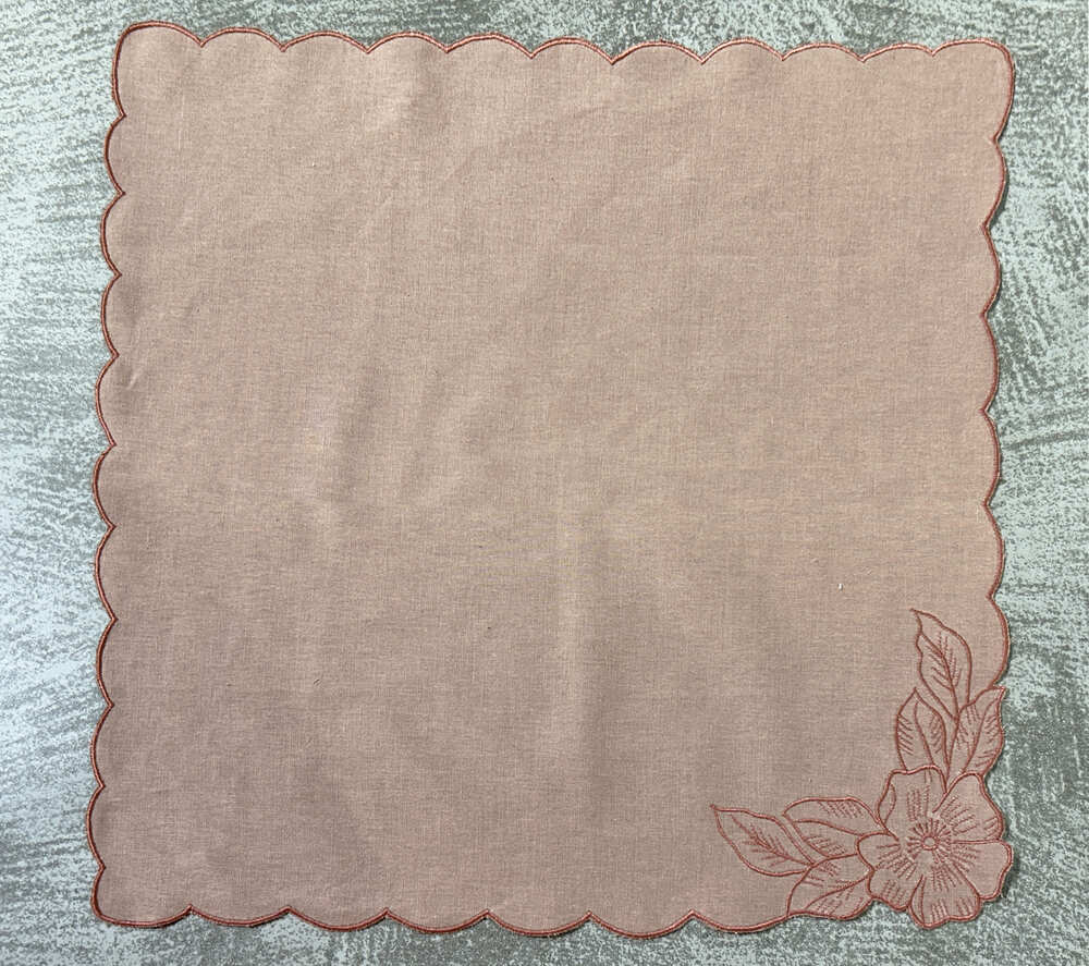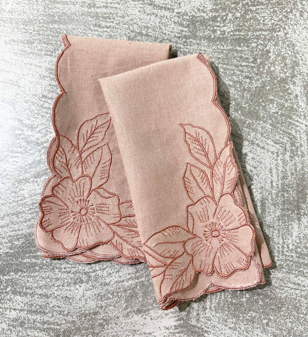 Color: Solid dyed in a soft, dusty pink or light peach tone. This versatile color palette complements a wide range of dinnerware and decor styles.