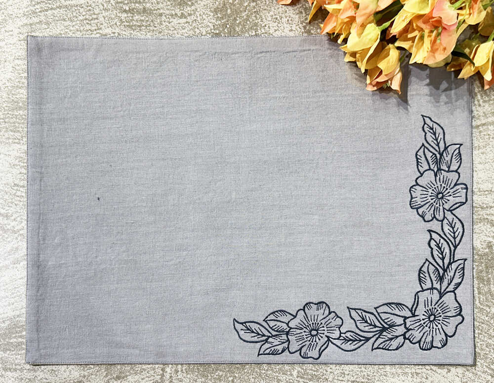 This stylish and complete table linen set is designed to bring a touch of understated elegance to your dining experience. The set features a cohesive design with intricate floral embroidery, making it a perfect addition for both casual and formal dining settings.