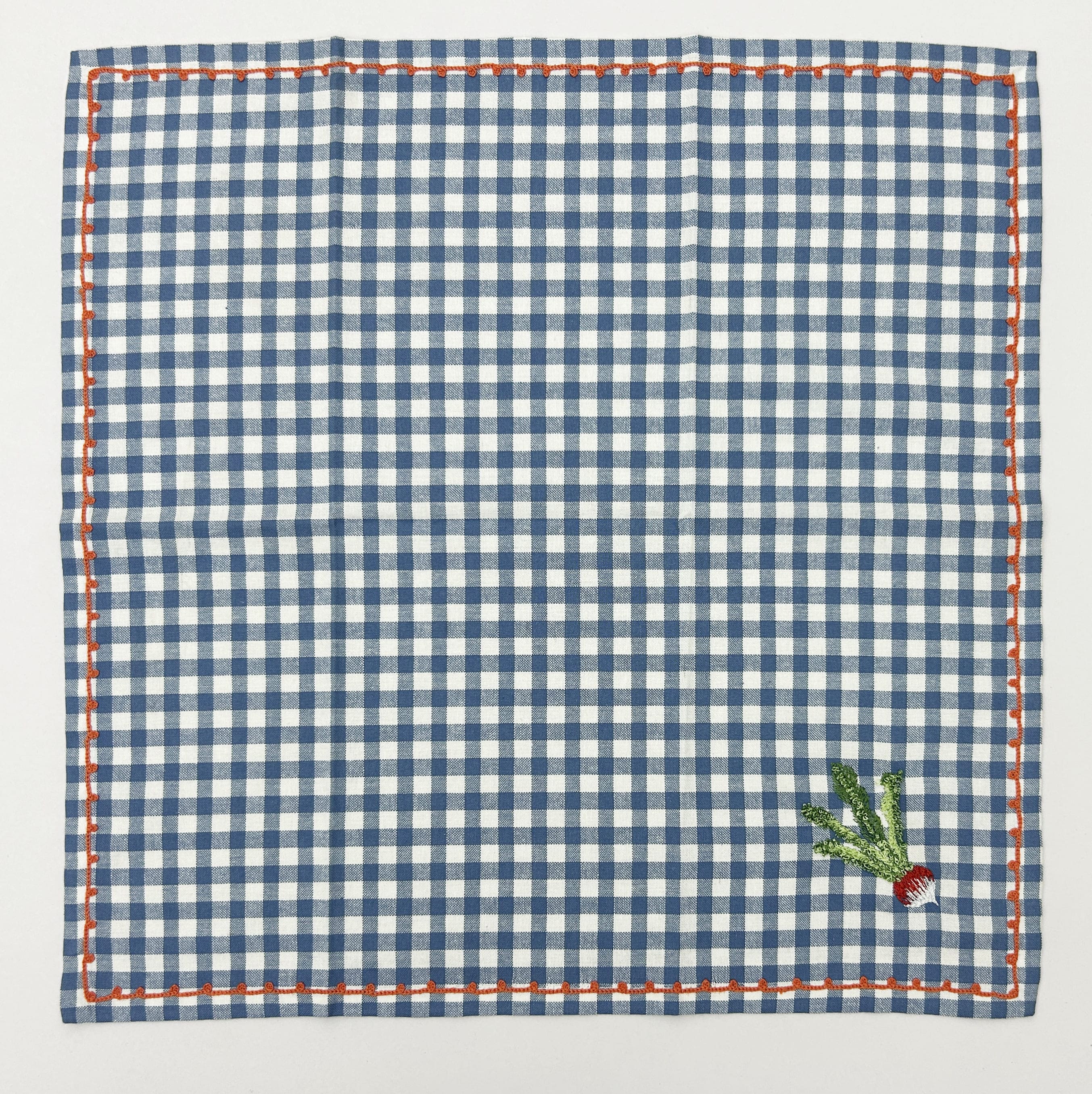 This is a stylish and charming set of four embroidered napkins, perfect for adding a touch of rustic and playful flair to your dining experience.