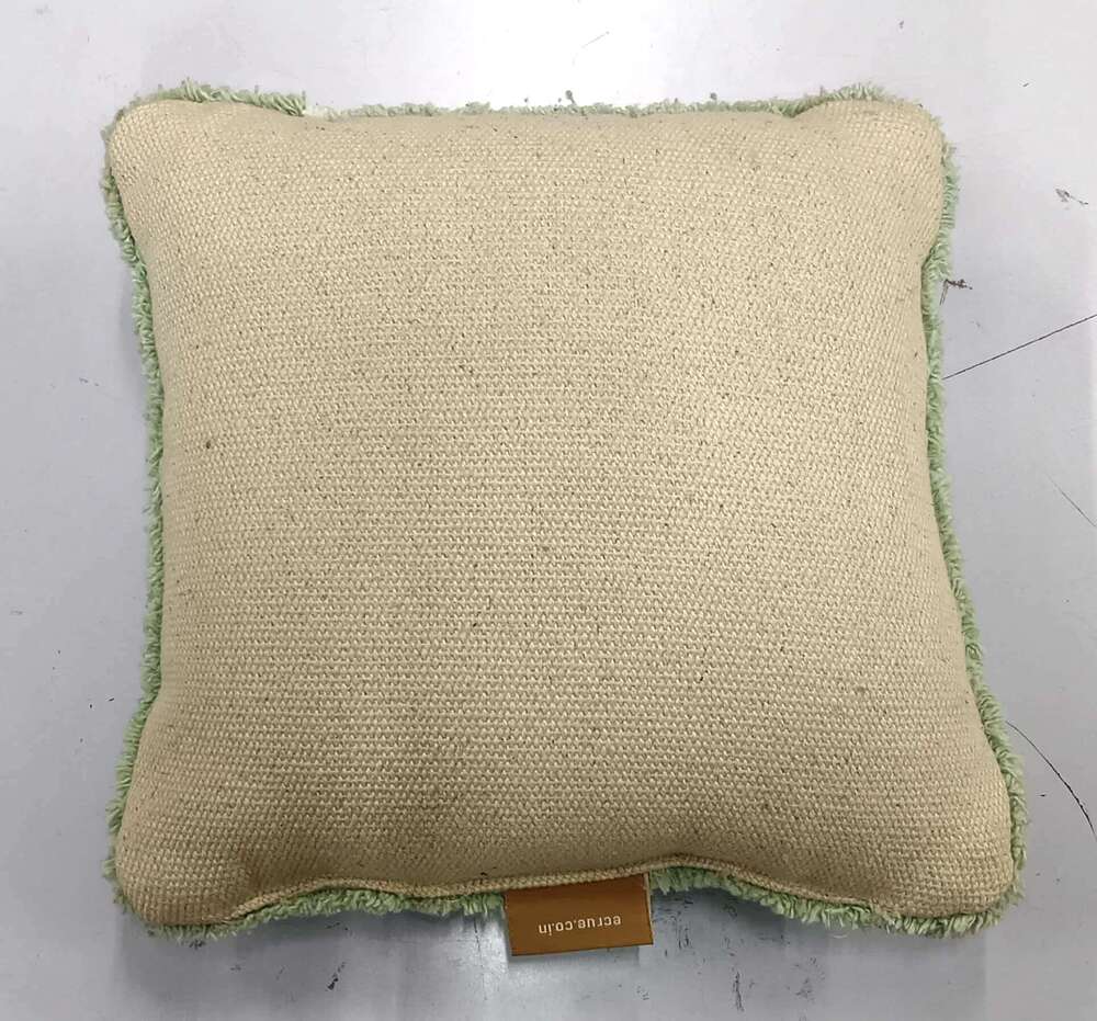 The background of the cushion is a soft, muted green, possibly with a slightly textured or tufted finish as well, which complements the white flowers and creates a gentle, garden-inspired aesthetic.