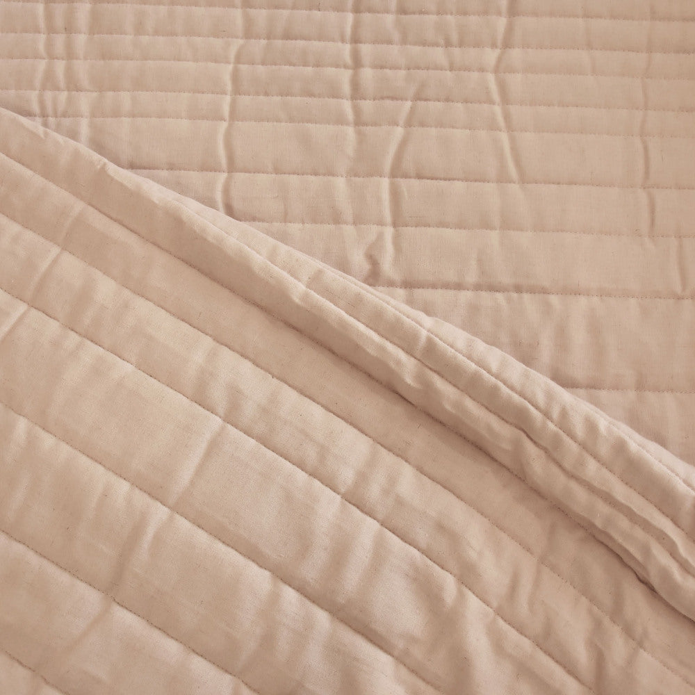 In summary, this product is a linen blend quilt and sham set with a corduroy texture, channel quilting, 120gsm poly wadding filling, and a natural color. It offers a blend of comfort, style, and versatility for your bedroom
