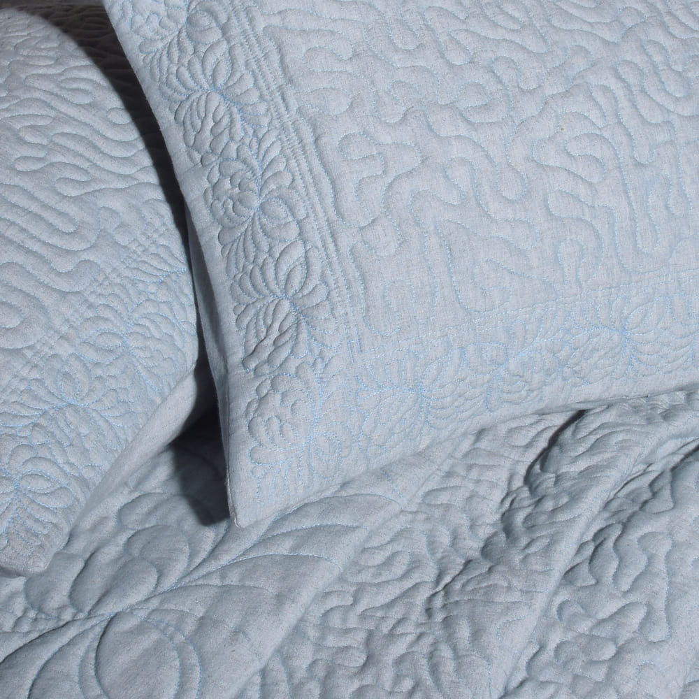 * Embroidery: Extensive machine embroidery on both the quilt and sham, adding a decorative touch.