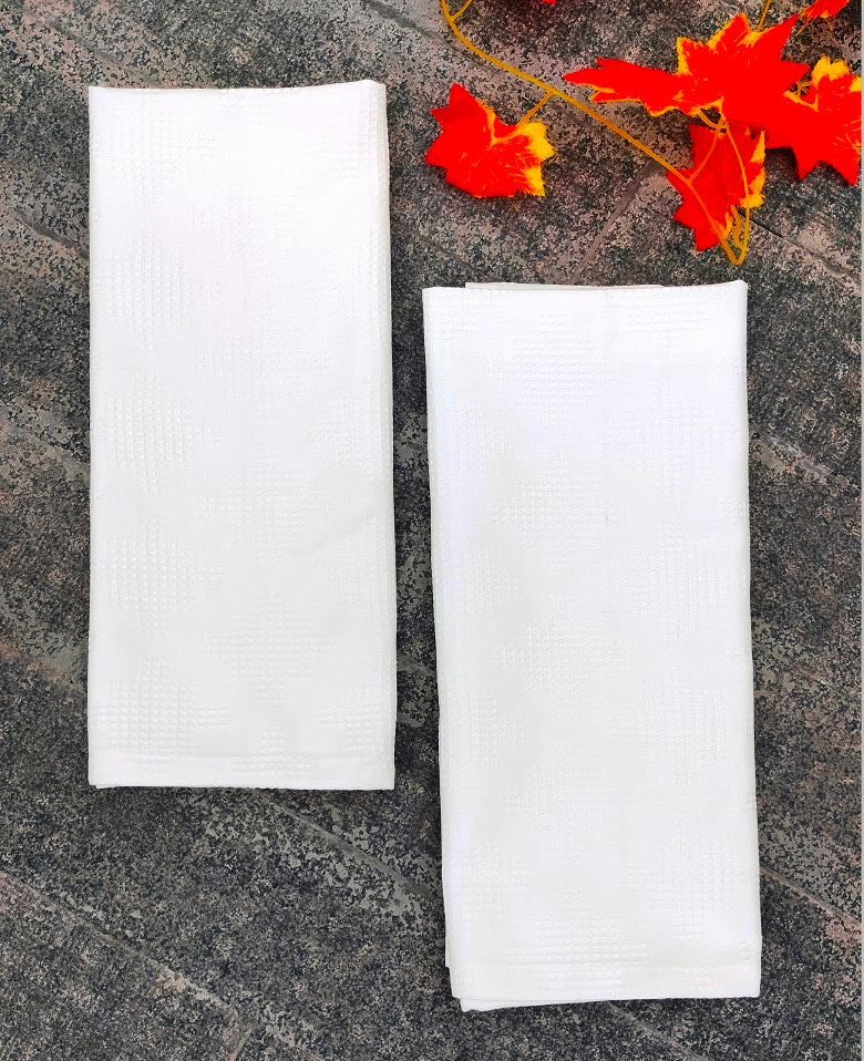 Enhance your kitchen's functionality and style with this set of two premium kitchen towels, combining the superior absorbency of a waffle weave with the intricate detailing of a dobby design. Crafted from soft, durable 100% cotton, these towels feature a textured, raised pattern that is both beautiful and highly effective for everyday kitchen tasks.
