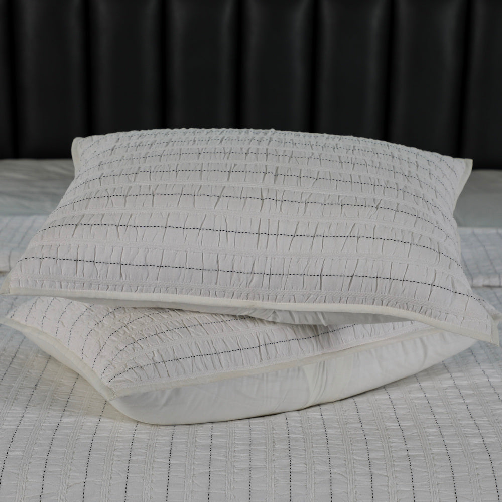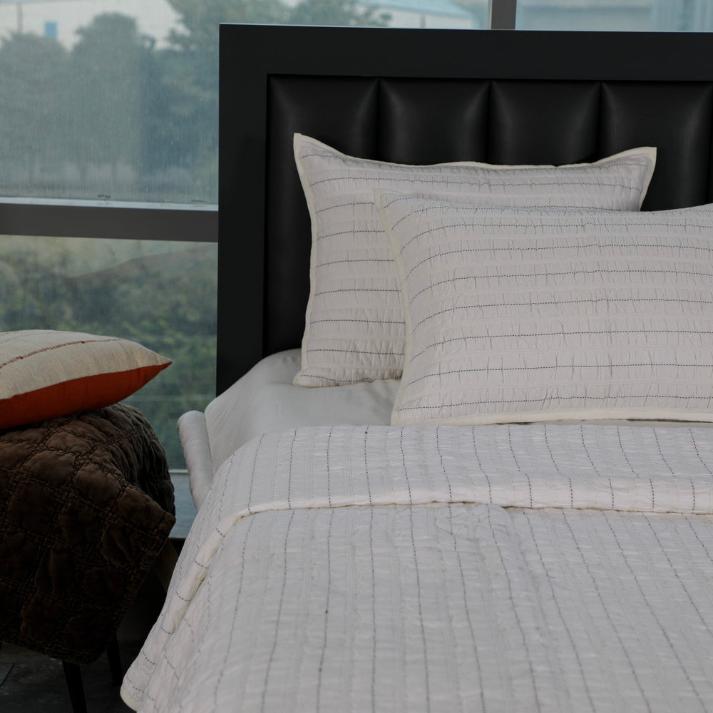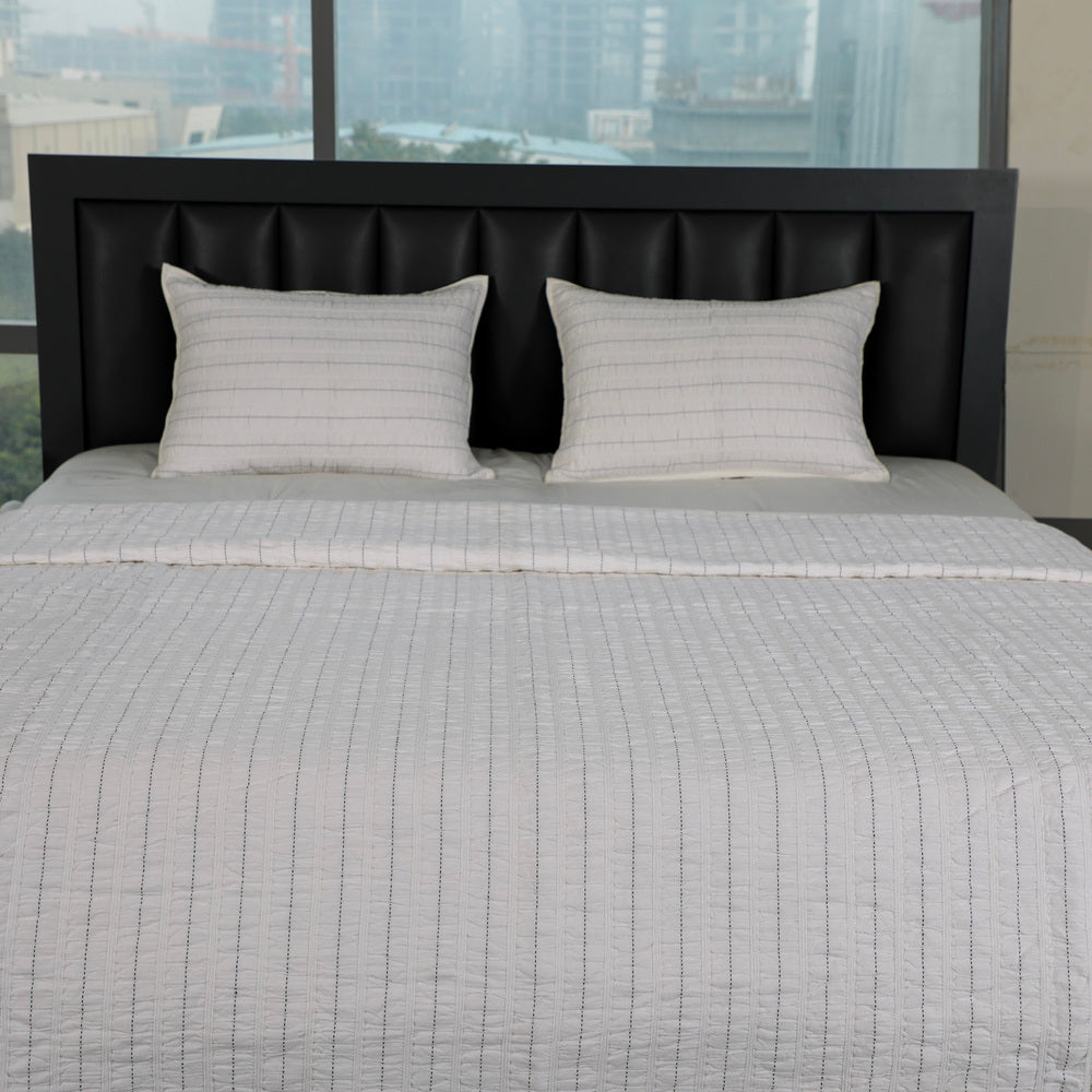Overall, this Woven Searsucker chawal taka Quilt set is a delightful and unique addition to any bedroom. Its light and airy texture, combined with the charming chawal taka pattern, creates a refreshing and inviting ambiance. It's perfect for those who appreciate natural fabrics and handcrafted details.