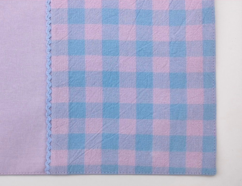 * Charming and Playful Design: The combination of pastel pink and blue checks with a solid body and zig-zag embroidery gives the placemat a youthful and cheerful character.